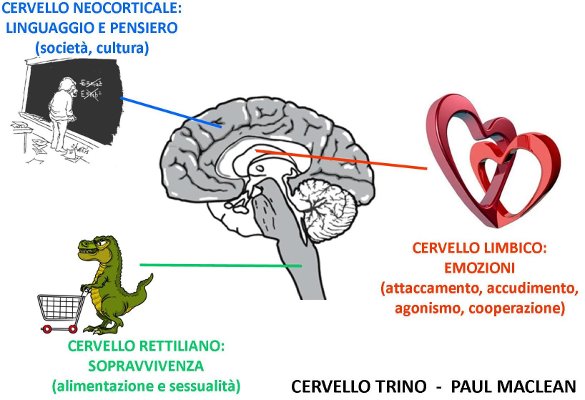 Secondo Mc. Lean il nostro cervello è sviluppato in tre grandi livelli, ognuno con funzioni specifiche: